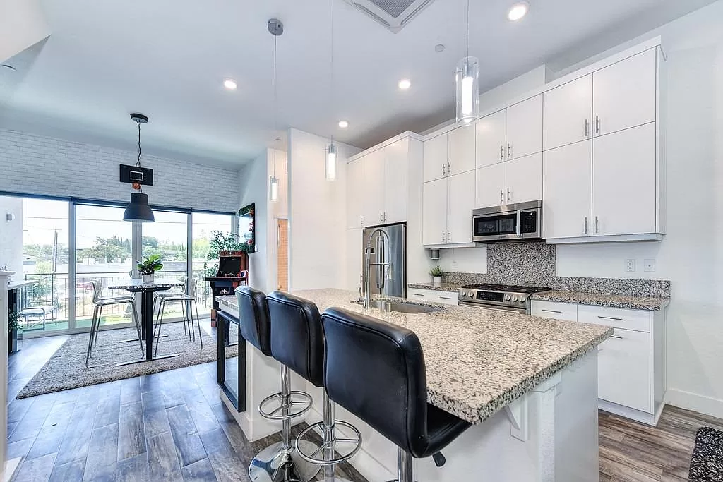 Enjoy luxury urban living in the heart of Midtown! Minutes from restaurants, dog parks, coffee shops and historic buildings, this modern three story townhome was tastefully built with timeless design and high ceilings. The first floor features a full bathroom, spacious bedroom with patio access and entrance to the 2 car garage. The main level offers plenty of natural light and is the perfect place to entertain guests with the open concept kitchen, family room, dining area and balcony with gas hookup. The Chef's kitchen is well-appointed with white cabinets, a large island with a sink, granite countertops, Bosch SS appliances and 60'' tall upper cabinets. On the top floor, the 2 bedrooms have their own full bathrooms and expansive walk-in closets. Save on energy costs with low-e glazed windows, multi-zone ductless HVAC system and great insulation.