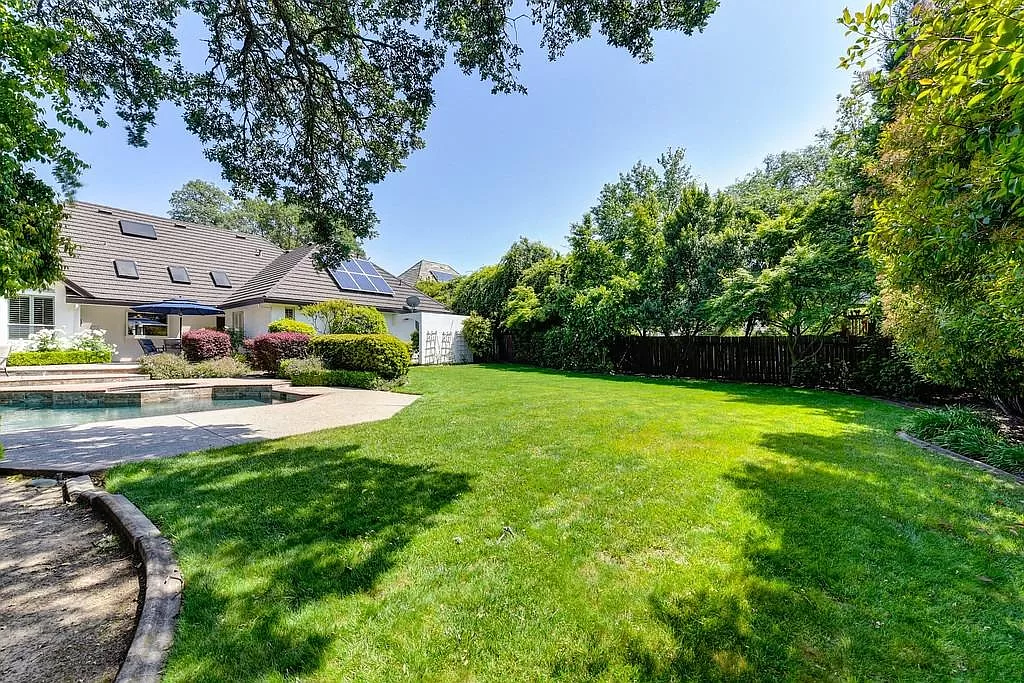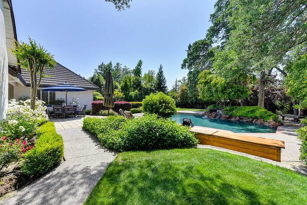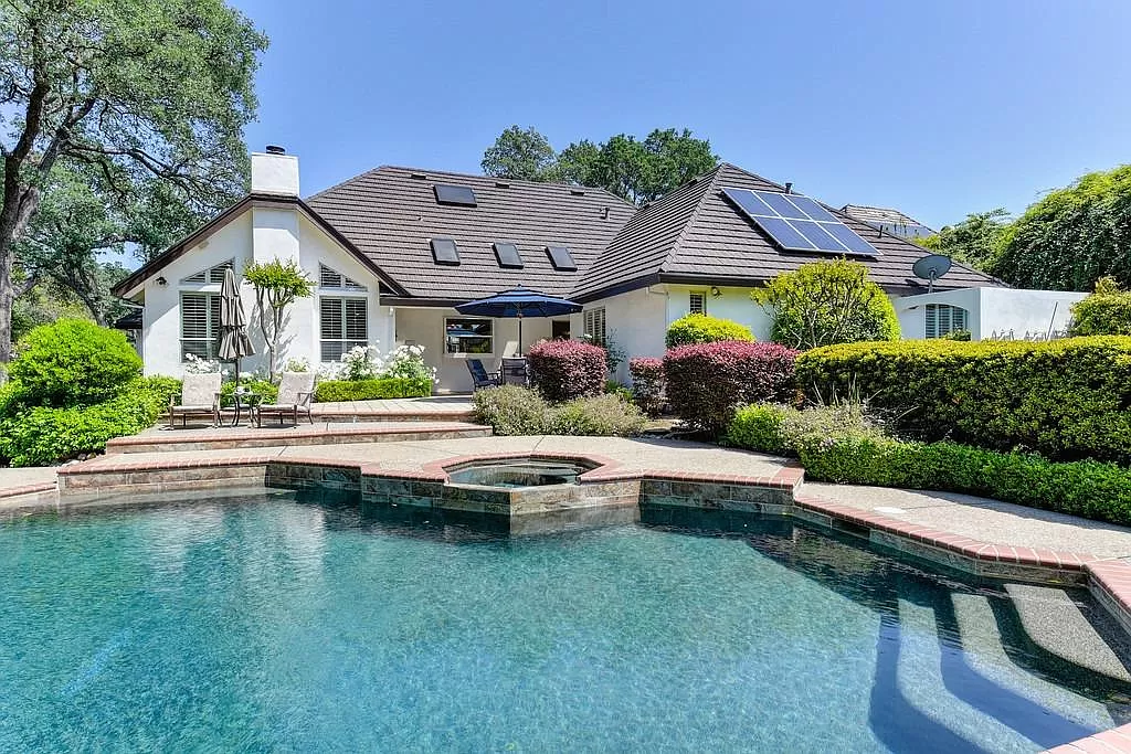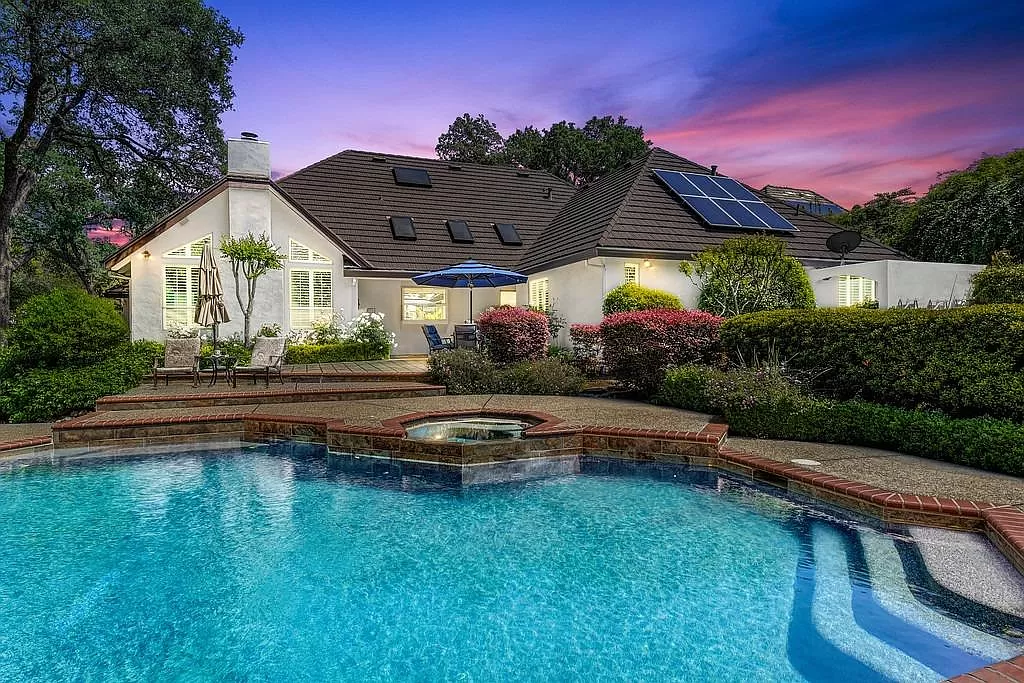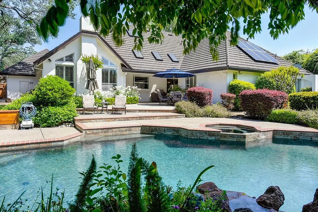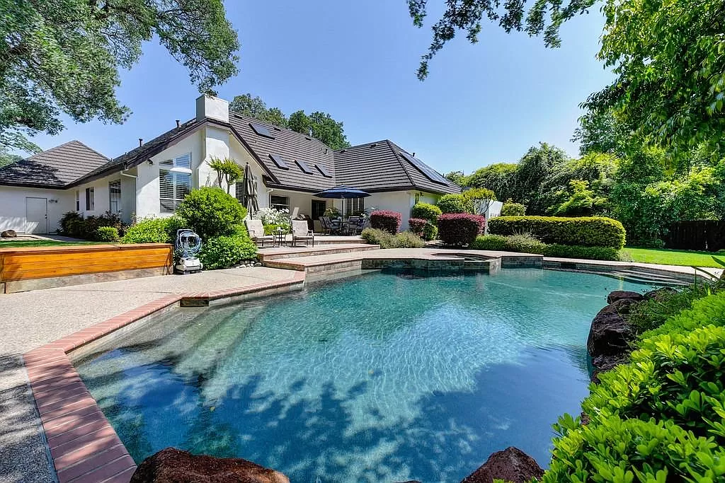 Fabulous Single Story on a Beautiful Tree-lined Street in Granite Bay! This rare find offers a spacious environment for simple living and relaxed gatherings with family & friends. 4 beds, 3 baths, separate living room, dining room & breakfast nook. Well-appointed chef's kitchen w/gas cooktop, center island, pantry closet, granite counters, quality stainless steel appliances & built-in refrigerator. Spacious primary suite w/large sitting area sunken tub, walk-in closet & outdoor access. With a spacious bedroom & full bath located on the opposite wing of the house, the layout is perfect for a home office or guest quarters. Wood-paneled cathedral ceilings in family room. 2 fireplaces. Amish white oak hardwood floors. Central Vacuum. Newer HVAC. Metal roof. The private rear yard offers a covered patio, lush lawn, sparkling salt water pool/spa with waterfall. Garden beds. Extra deep 3-car garage. Owned Solar. Stellar schools. Close to dining, shopping, golf and Folsom Lake!