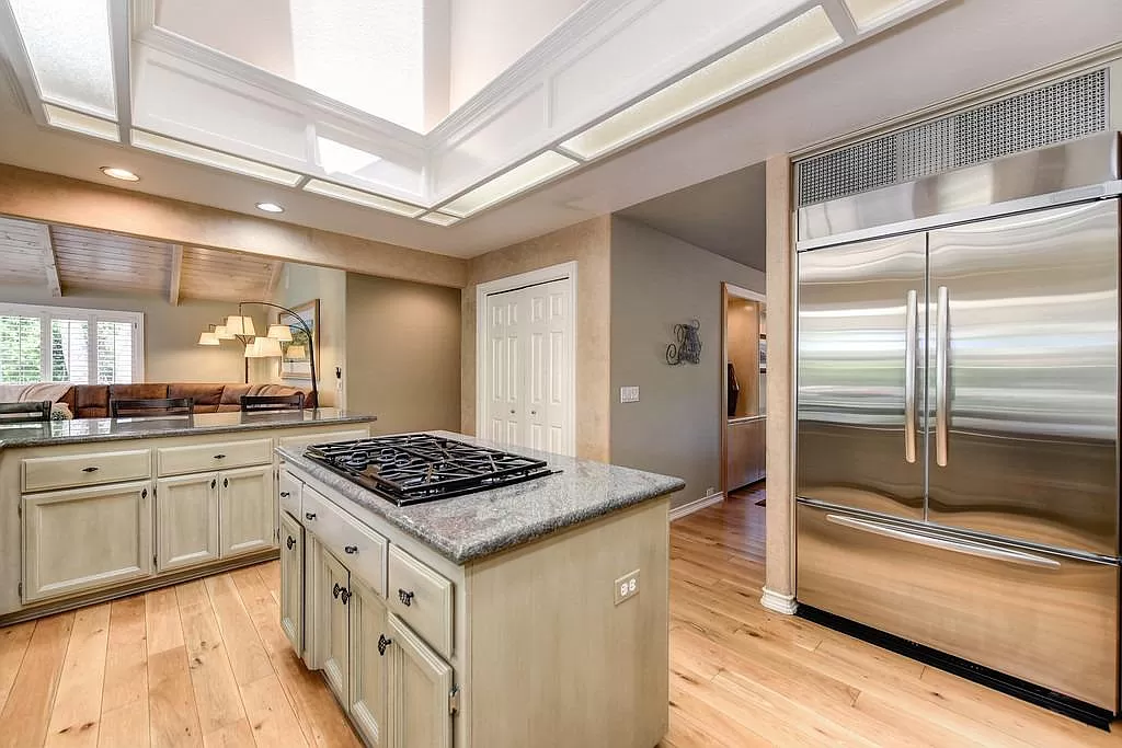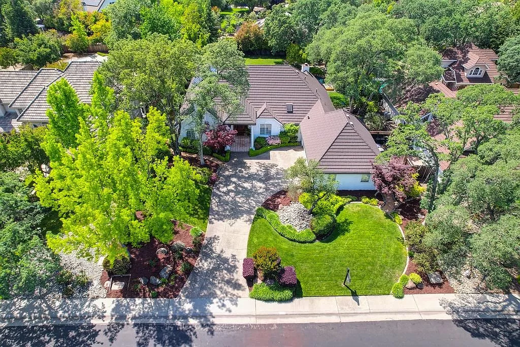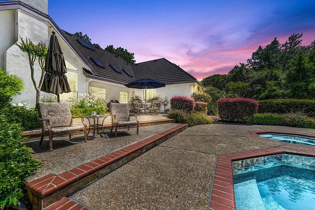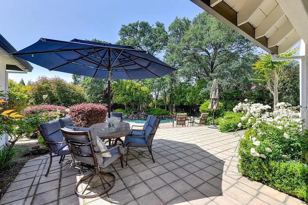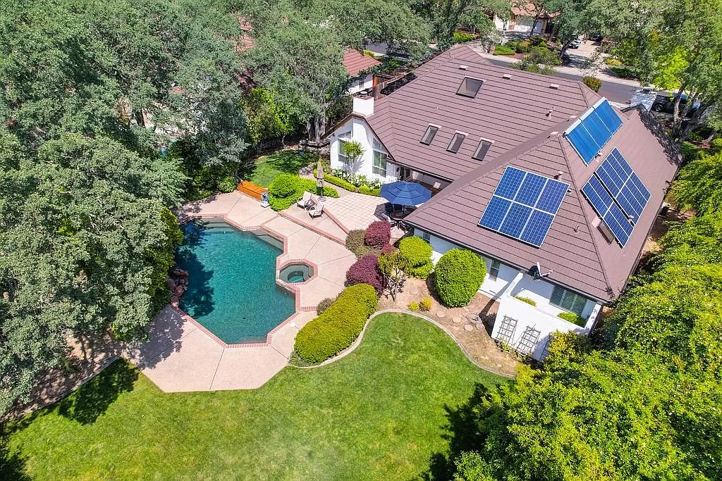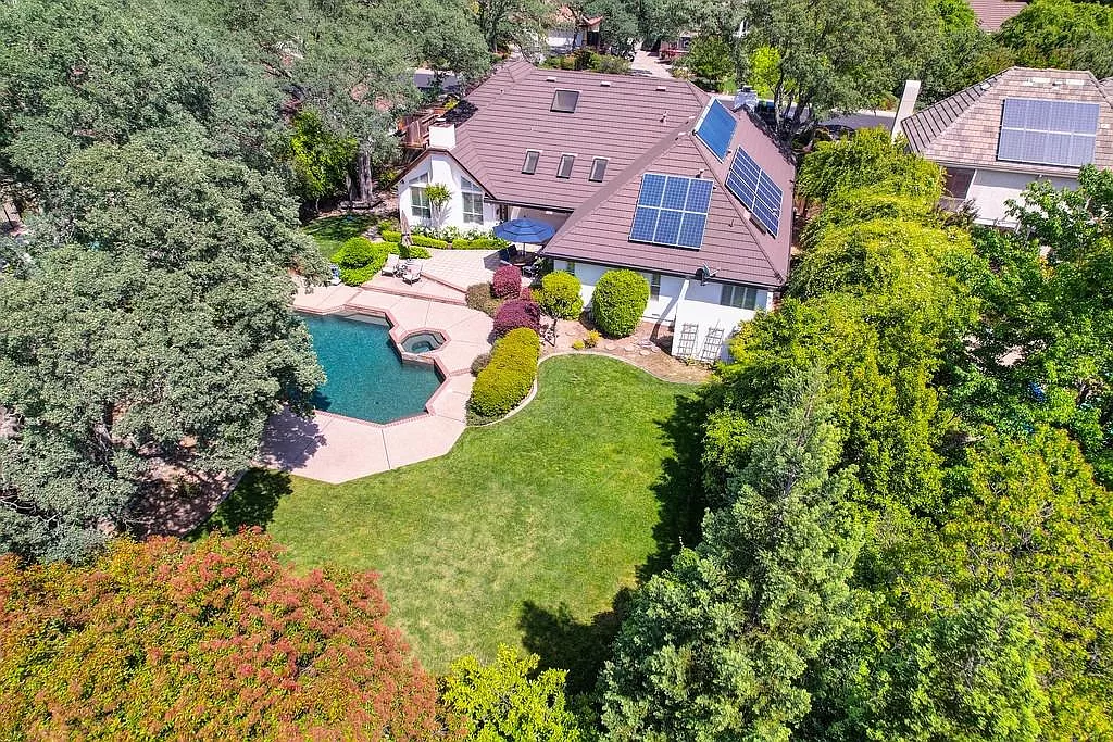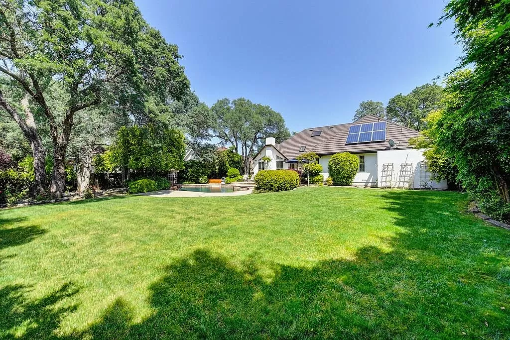 Fabulous Single Story on a Beautiful Tree-lined Street in Granite Bay! This rare find offers a spacious environment for simple living and relaxed gatherings with family & friends. 4 beds, 3 baths, separate living room, dining room & breakfast nook. Well-appointed chef's kitchen w/gas cooktop, center island, pantry closet, granite counters, quality stainless steel appliances & built-in refrigerator. Spacious primary suite w/large sitting area sunken tub, walk-in closet & outdoor access. With a spacious bedroom & full bath located on the opposite wing of the house, the layout is perfect for a home office or guest quarters. Wood-paneled cathedral ceilings in family room. 2 fireplaces. Amish white oak hardwood floors. Central Vacuum. Newer HVAC. Metal roof. The private rear yard offers a covered patio, lush lawn, sparkling salt water pool/spa with waterfall. Garden beds. Extra deep 3-car garage. Owned Solar. Stellar schools. Close to dining, shopping, golf and Folsom Lake!
